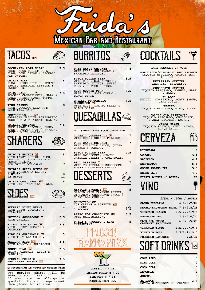 Welcome to Frida's - 31 Albert Embankment, a vibrant haven for Mexican cuisine nestled along the picturesque Albert Embankment in London. Here, the menu is a delightful exploration of traditional flavors, highlighted by their tantalizing Tacos. Try the Cochinita Pork Pibil, featuring free-range pulled pork that melts in your mouth, or the spicy Chilli Beef Tacos for a hearty kick. Vegetarian options like the Portobello Tacos offer garlicky goodness for mushroom lovers.